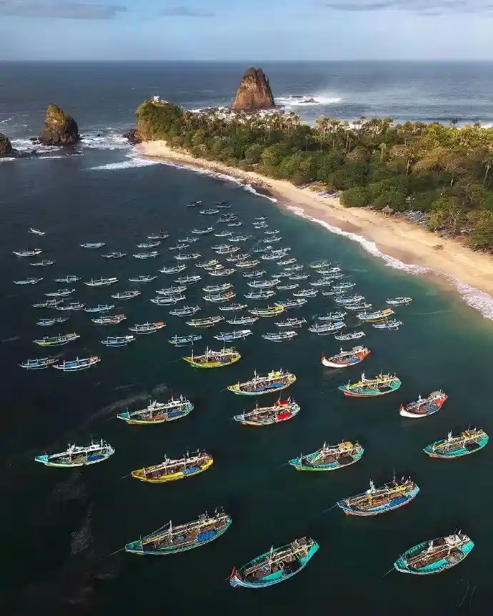 09:00-10:00--【玛莉卡白沙滩】(已含门票,游览时间约1小时)(Pantai Putih Malika,PAPUMA)白色沙滩,嶙峋礁石,碧蓝的水面上,色彩缤纷的船只,千帆竞发,和海天一色共同描绘成灵动壮观的风景!