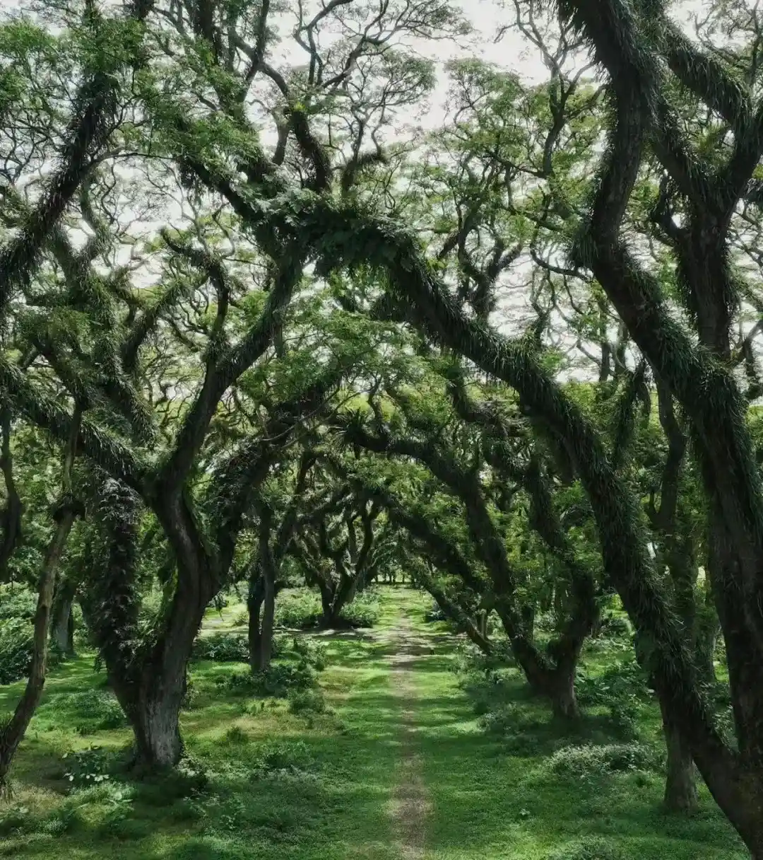 德贾瓦坦森林:德贾瓦坦森林(De Djawatan Forest),位于印度尼西亚爪哇岛中部,是世界上仅存的少数热带雨林之一。这片森林被誉为印尼的“绿肺”,拥有许多年过百岁的雨树(学名:Samaanea saman ),这些树具有很强的吸水能力,使得枝干常年潮湿,因而成为蕨类植物舒适的家园,所以整个森林放眼望去组绿意盎然。