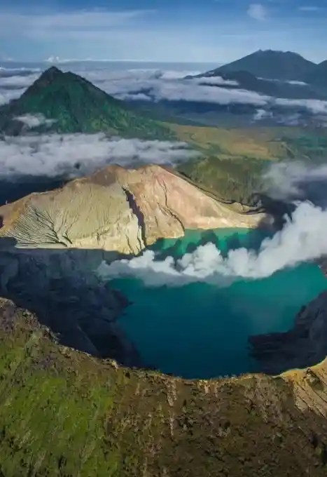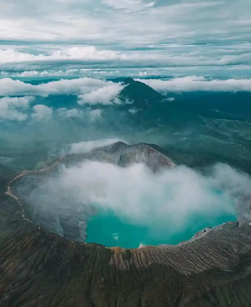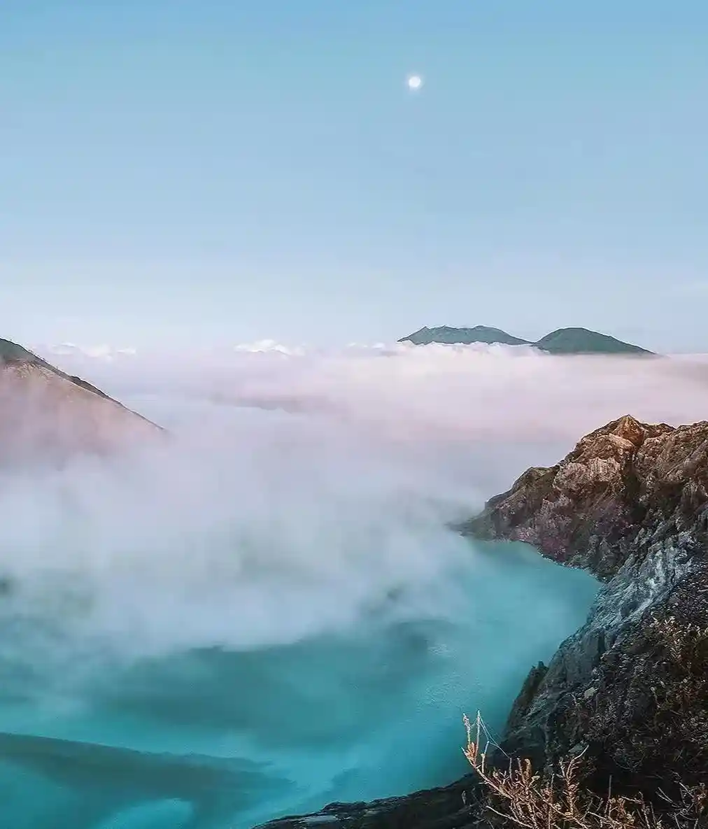 宜珍火山:宜珍火山位于印尼爪哇岛东部,由多个小复式火山组成的活火山,一个宽约1公里的火山口湖,夜晚是永恒的蓝火,日出后呈现治愈的蓝湖, 据说这种自然景象在世界上只有两个地方出现,令无数人跋山涉水,一睹芳容。