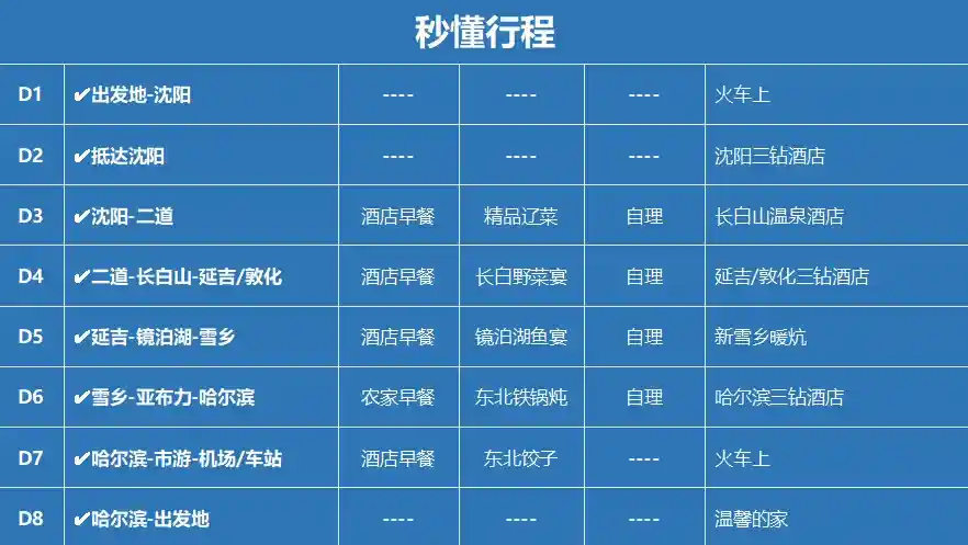 1.因东北地大物博,跨度较长,当天车程较长,可自备小食,保温杯等。