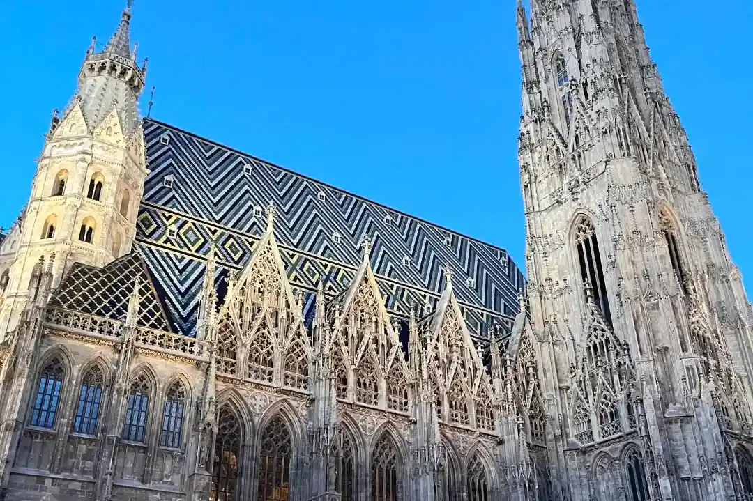 ◈【斯蒂芬大教堂】是维也纳的象征它坐落市中心的中央,故又有”维也纳心脏”之称。高度居世界第三。铺反的屋顶上引人注目的由黄绿黑三色组成臂章图案以及代表哈布斯堡王朝的双头鹰。
