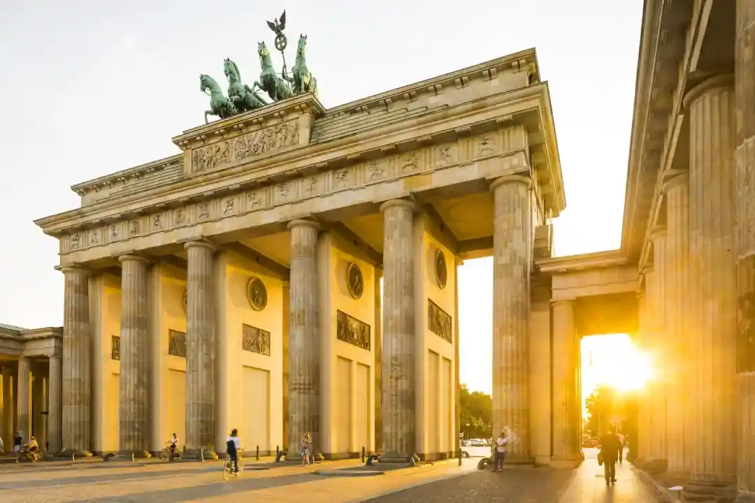 ◈酒店早餐后,前往游览德国的首都【柏林】(游览时间约1.5小时)【勃兰登堡门】又称命运之门,建成于1791年的新古典主义风格的砂岩建筑,它是东西德分裂的历史见证,是柏林的标志,也是德国的国家标志。以雅典卫城城门为蓝本,门顶上是张开翅膀的胜利女神驾驶四轮马车的铜像,这一切都象征着战争的胜利。1989年柏林墙倒塌后它成为了两德统一的象征。