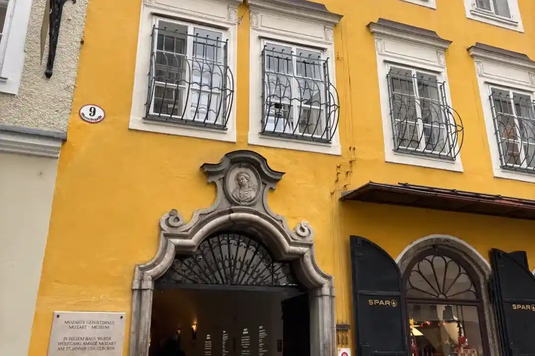 ◈【莫扎特故居】外观莫扎特诞生的盖特莱德街9 号的一座米黄色6 层公寓楼房。从1917 年起,这座公寓楼房就作为莫扎特纪念馆。每年7月,在萨尔茨堡都要举行为期5周的莫扎特音乐节。