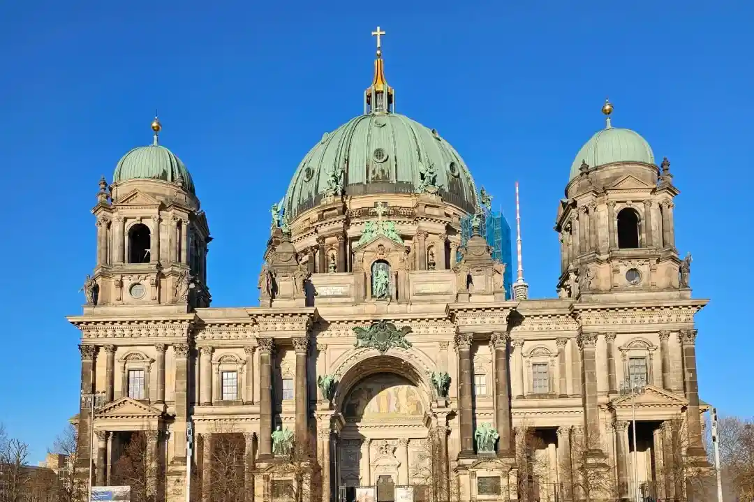 ◈【柏林大教堂】是基督教路德宗教堂,曾是德意志帝国霍亨索伦王朝的宫廷教堂。建筑风格为巴洛克式和文艺复兴式,内饰极为华丽,白金色调为主,但只有少数房间对外开放。地下为王室陵墓,其中较珍贵的是大选帝侯及夫人Dorothea,弗里德里希国王一世及王后索菲·夏洛滕的棺材价值连城。
