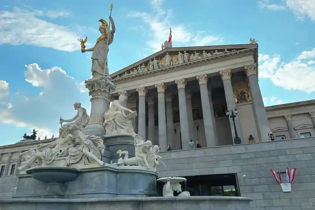 ◈【议会大厦外景】为国家政治和权力象征。位于奥地利首都维也纳市区中心,公元1874年由奥费尔‧汉森(Theophil Hansen)所设计,整栋建筑仿希腊式,素有“欧洲最美的国会大厦”的美称。