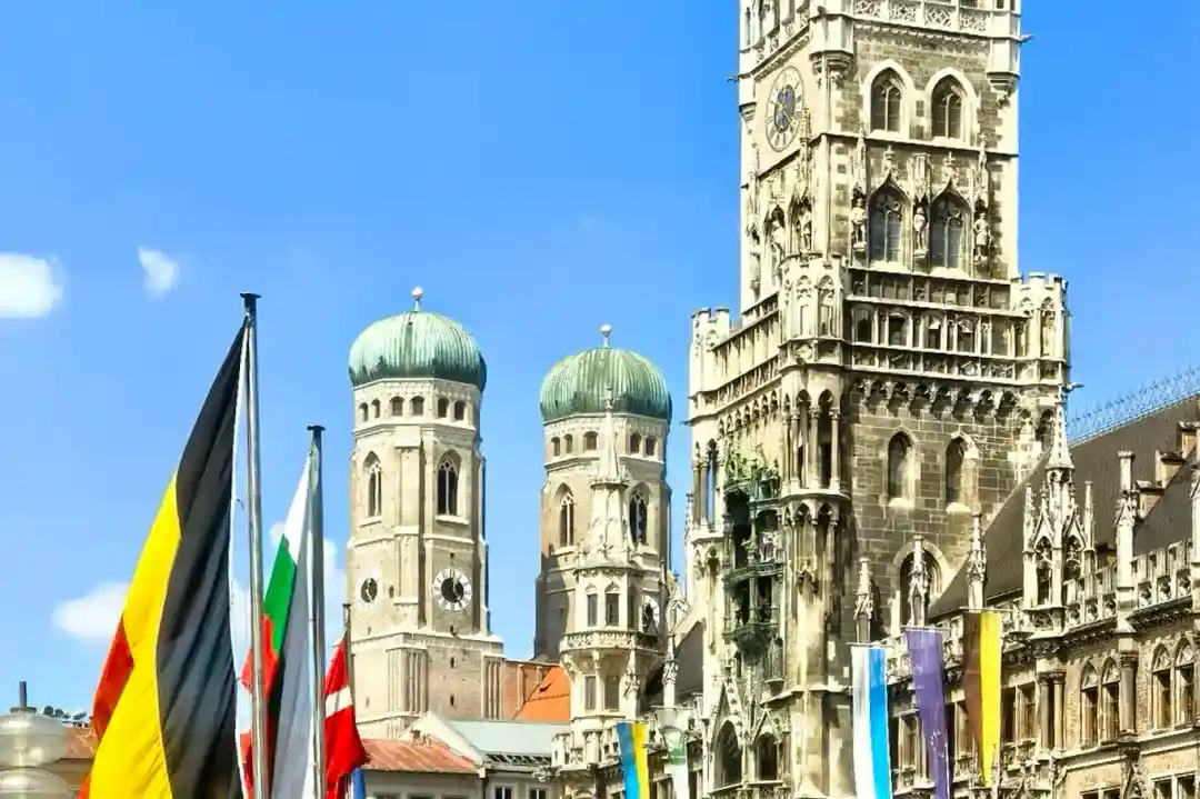 ◈酒店早餐后,前往【慕尼黑】(游览时间约1小时)【新市政厅】慕尼黑新市政厅位于玛丽恩广场,是一座新哥特风格的建筑,建造于1867-1909年之间。市政厅正面装饰有巴伐利亚国王、传说中的英雄和圣人等雕像。游客可以登上高85米高的巨塔眺望慕尼黑的街市景致。