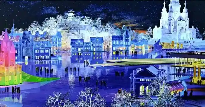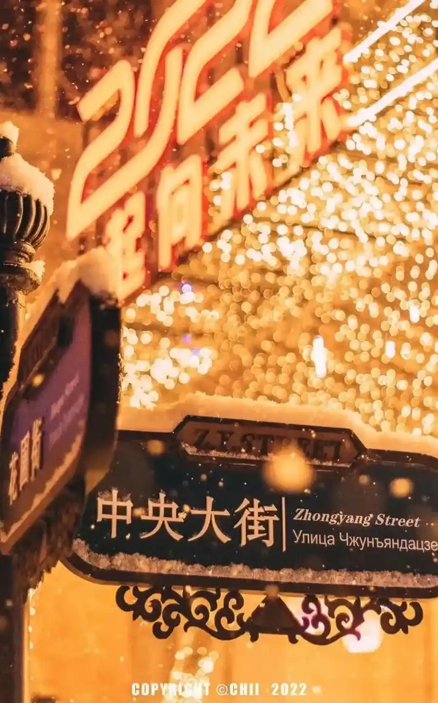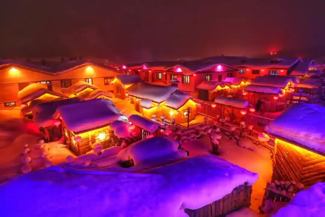 一片片火红灯光亮起,映照着雪馒头似的屋檐